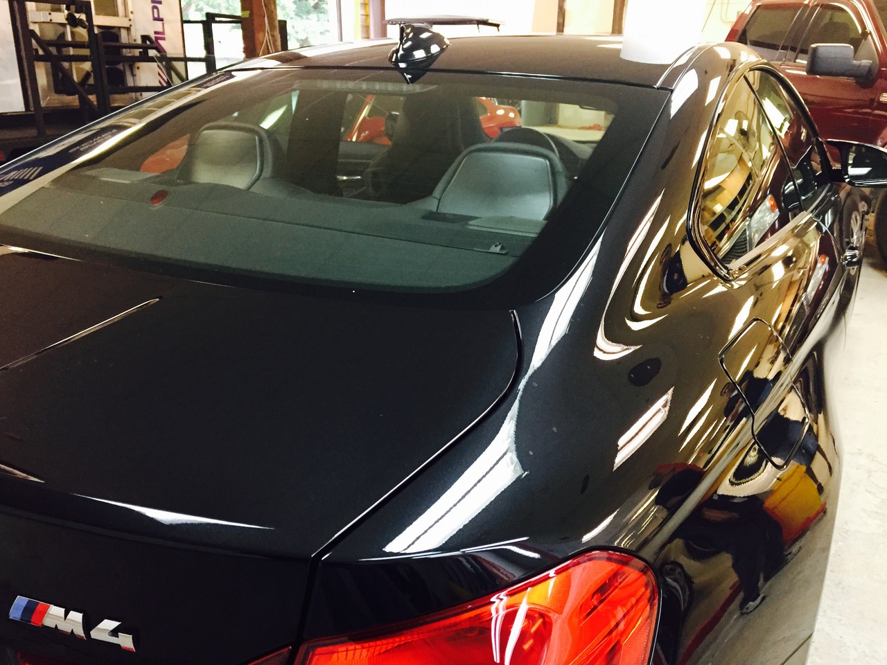 Here are some before and after pictures of a window tint job. This M4 looks good as is, but the window tint makes it look even sleeker and meaner on the road. What a beast! Black on black, this machine is a real head turner and got a lot of compliments while in our shop.