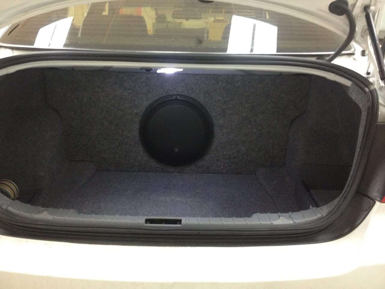12 inch W3-series JL Audio subwoofer. Panelled off in the trunk.