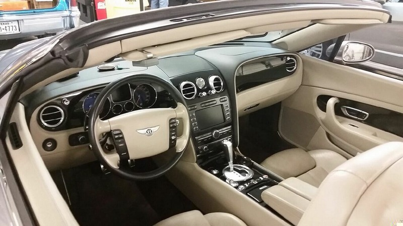 Full front dashboard, steering wheel, and audio display inside Bentley GT Continental