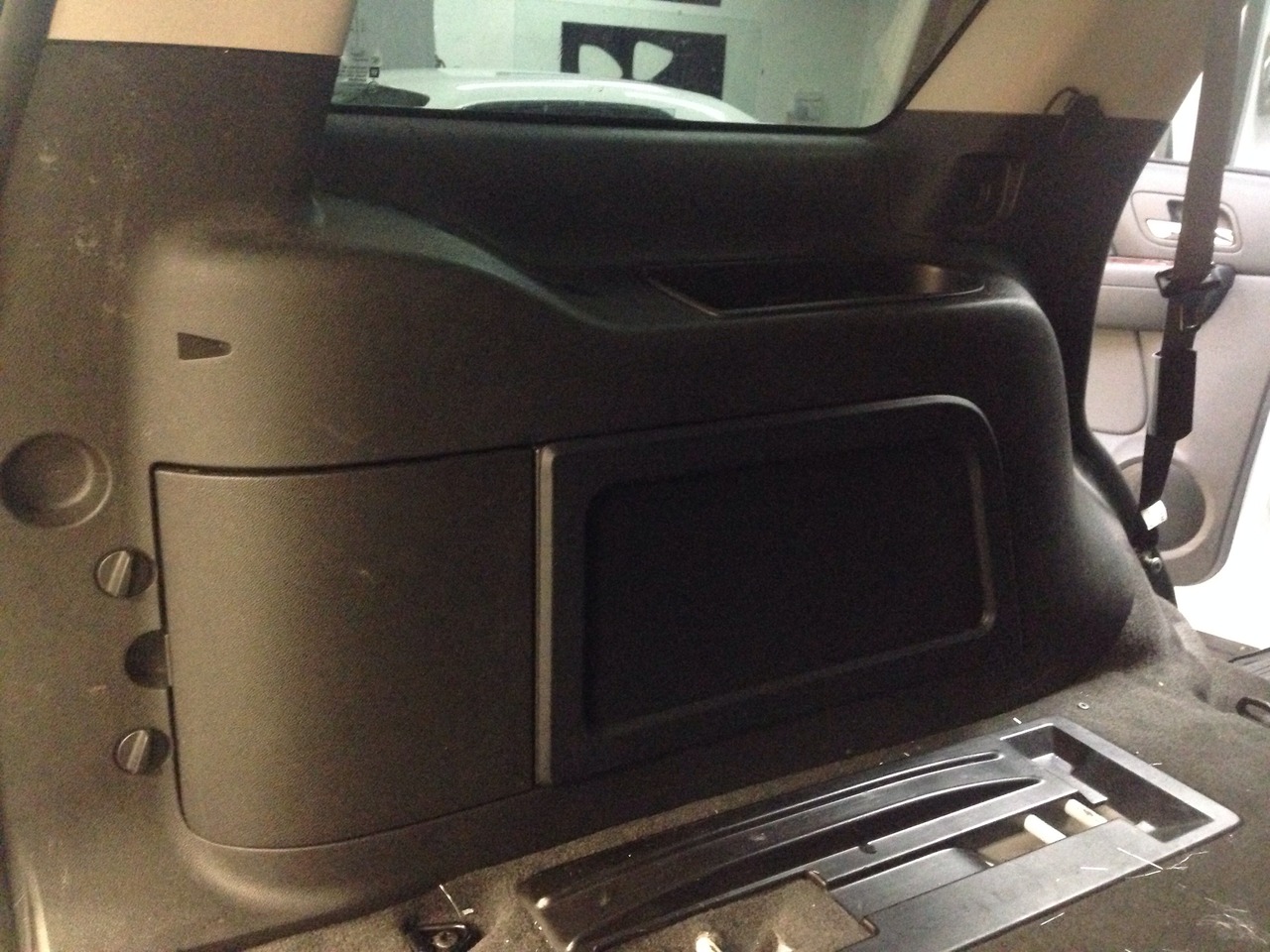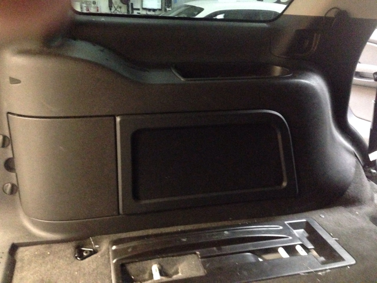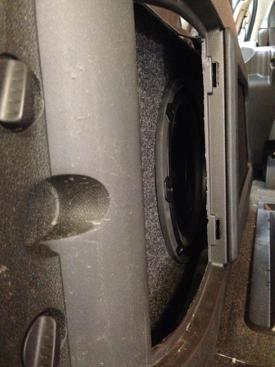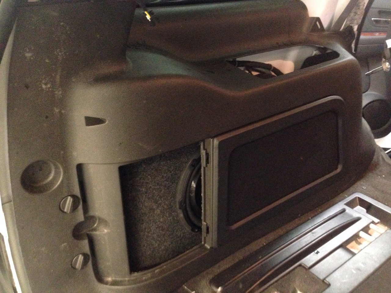 subwoofer is mounted behind quarter panel cover