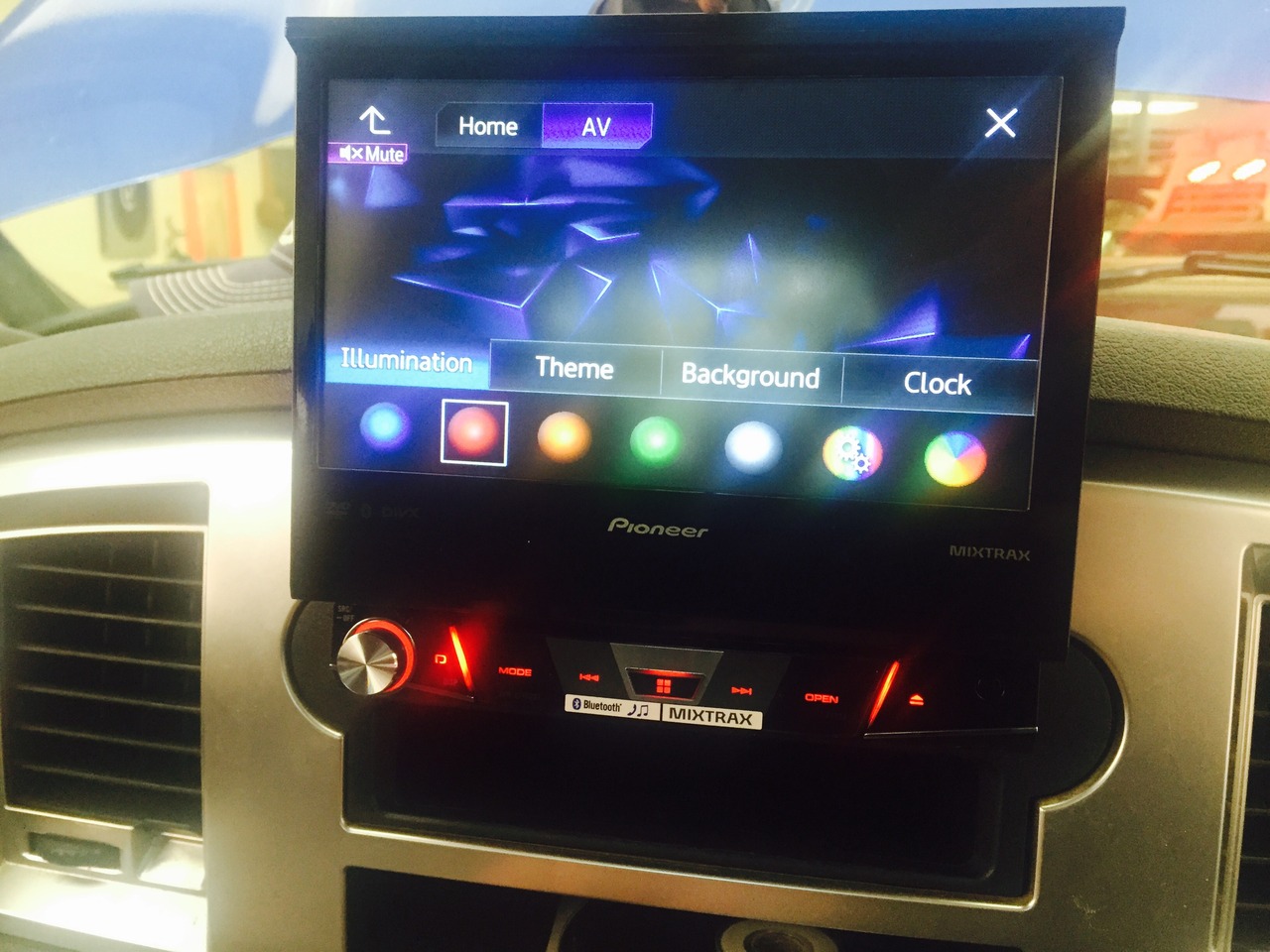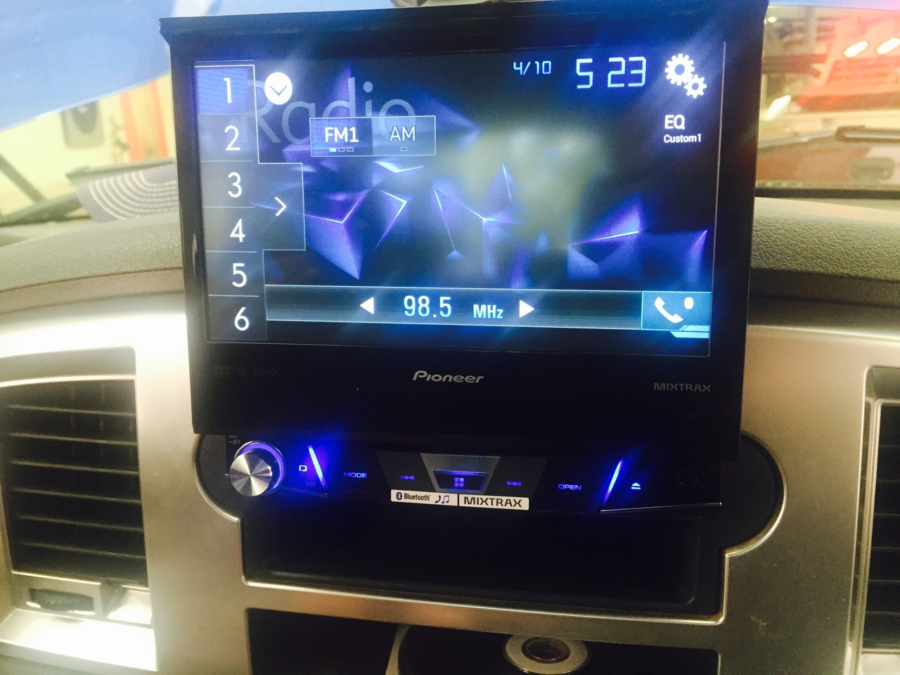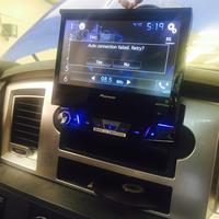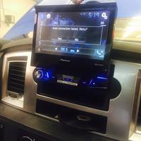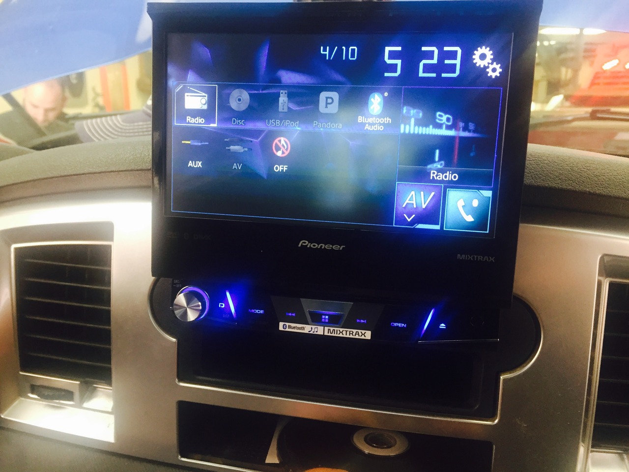 This quad cab Dodge Ram got a sweet Bluetooth, touch-panel DVD player installed. This unit folds out to expose a beautiful 7 inch touch-screen head unit. Highly customizable with brilliant illumination colors and sound quality is superb!
