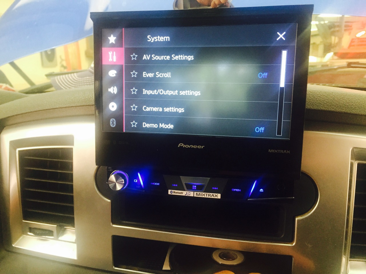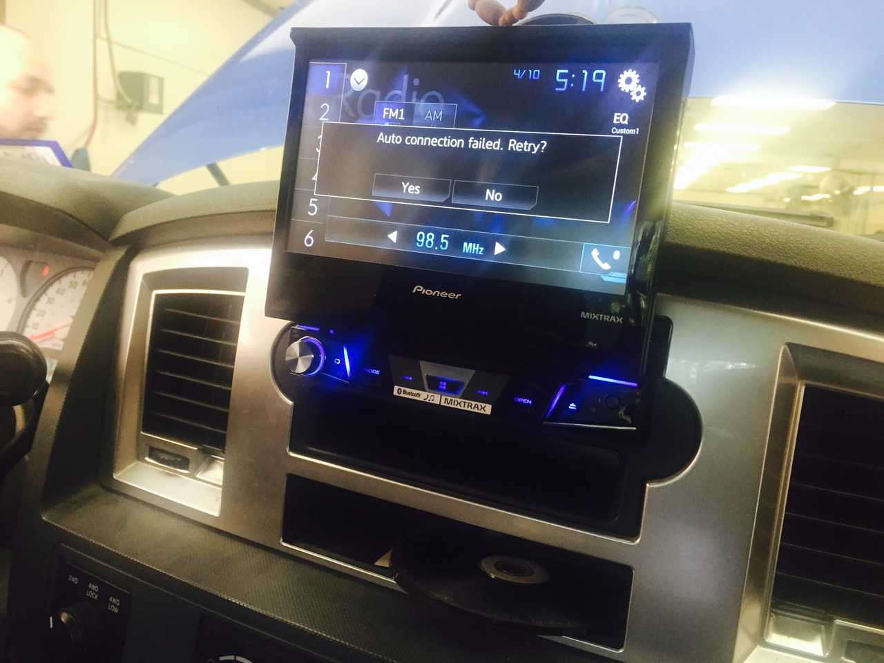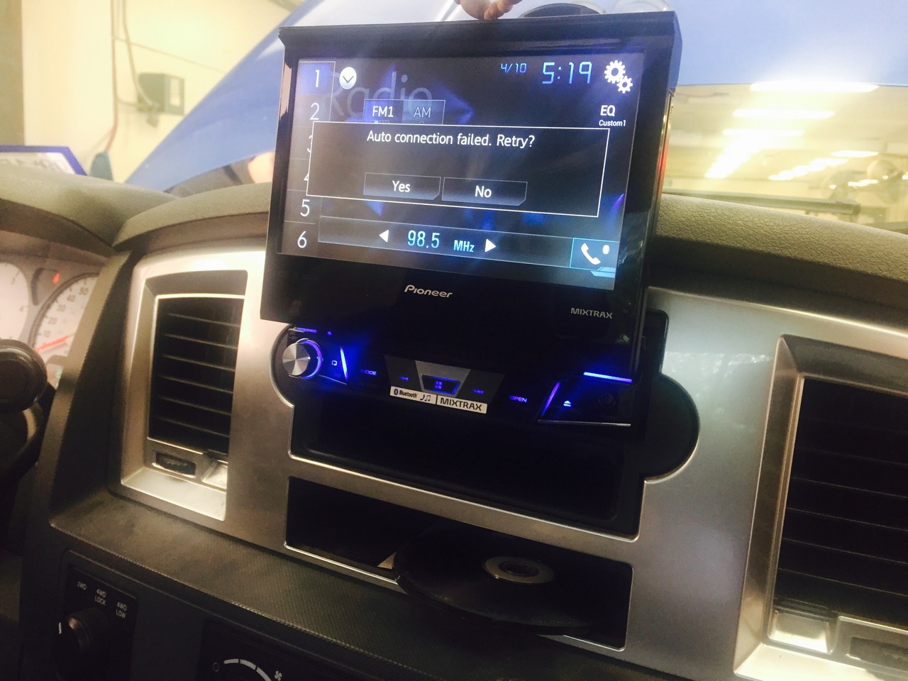 This quad cab Dodge Ram got a sweet Bluetooth, touch-panel DVD player installed. This unit folds out to expose a beautiful 7 inch touch-screen head unit. Highly customizable with brilliant illumination colors and sound quality is superb!