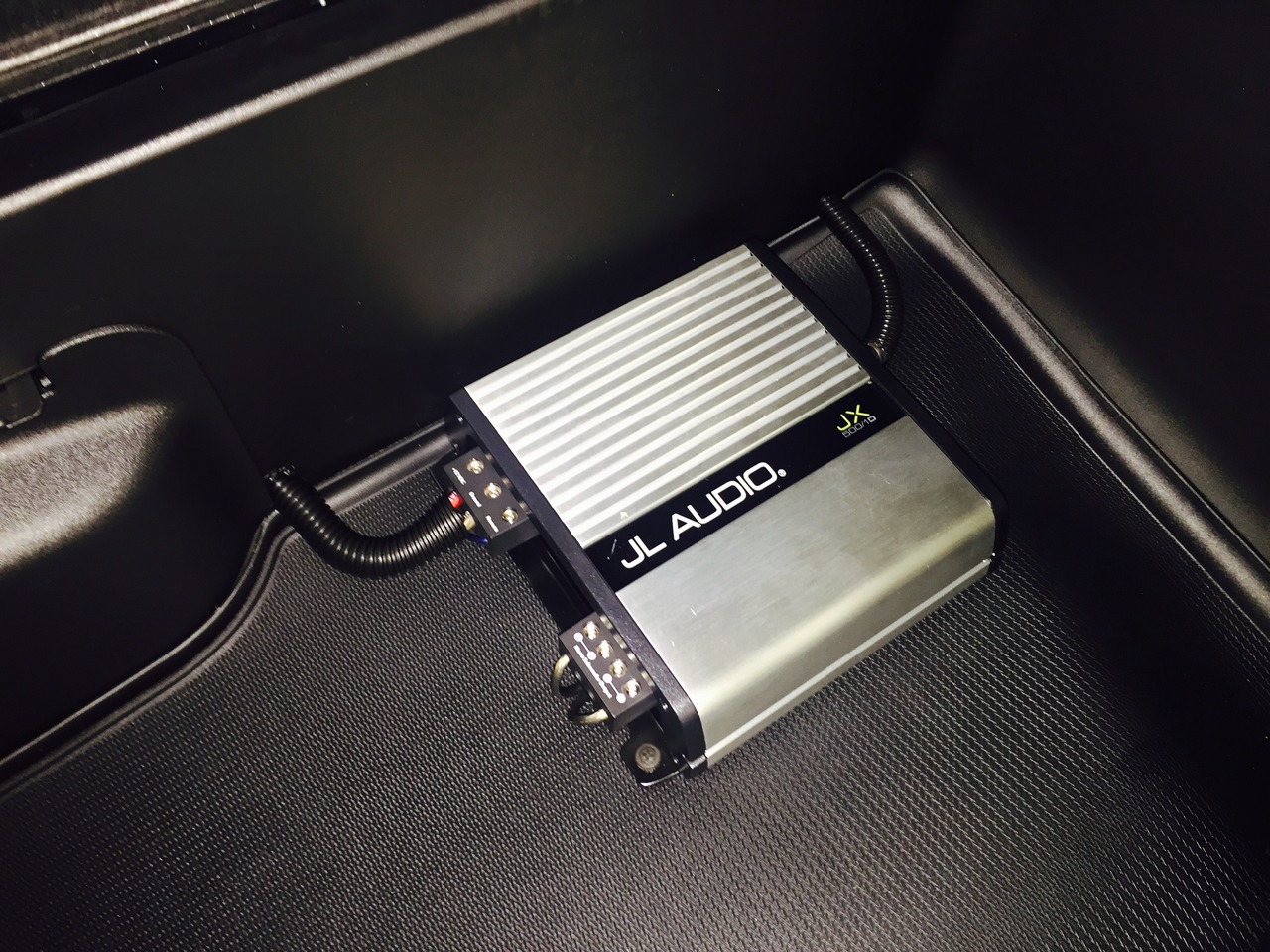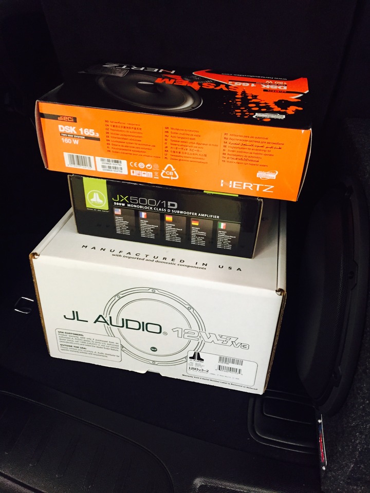 Just off the showroom floor, this 2015 Dodge Durango got a nice little sound system upgrade. Front speakers were upgraded as well as adding a subwoofer. The 12 inch JL Audio sub is powered by the JL Audio JX series 500 watt amp.