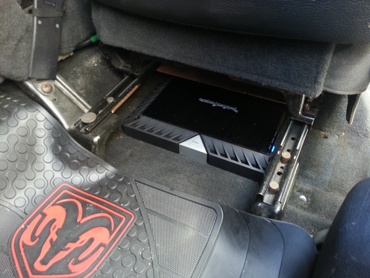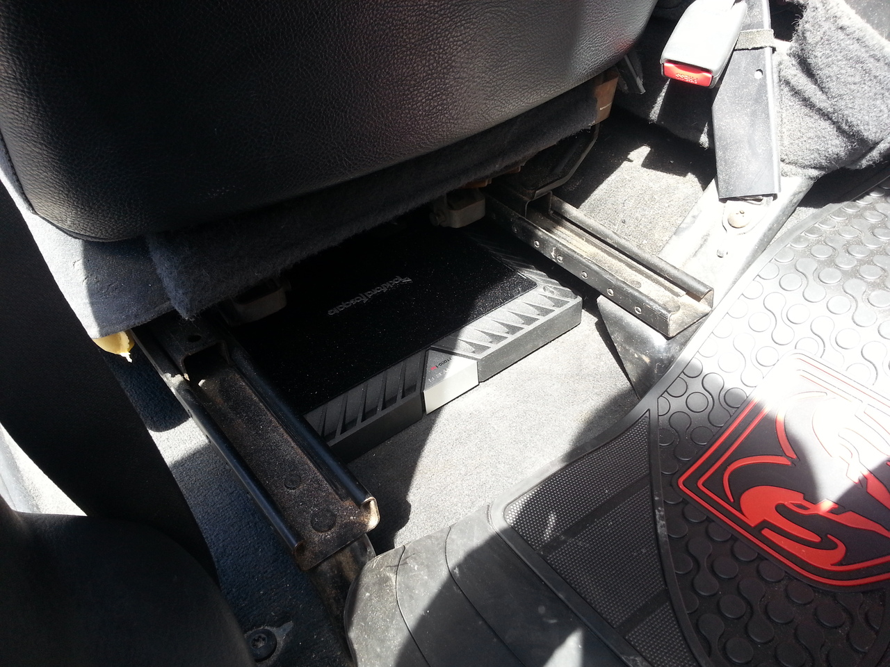 Amplifier mounted under seat where RCA cables cannot be kicked