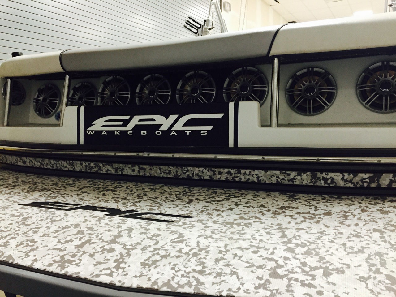 Epic wake-boats are known to heavy up on speakers in and on the back of the boat. Adding a pair of dual 8 inch marine speaker pods to the towers takes it to the next level. The range on these speakers is just tremendous. Everyone on the water knows when this boat is coming. Gotta love it!