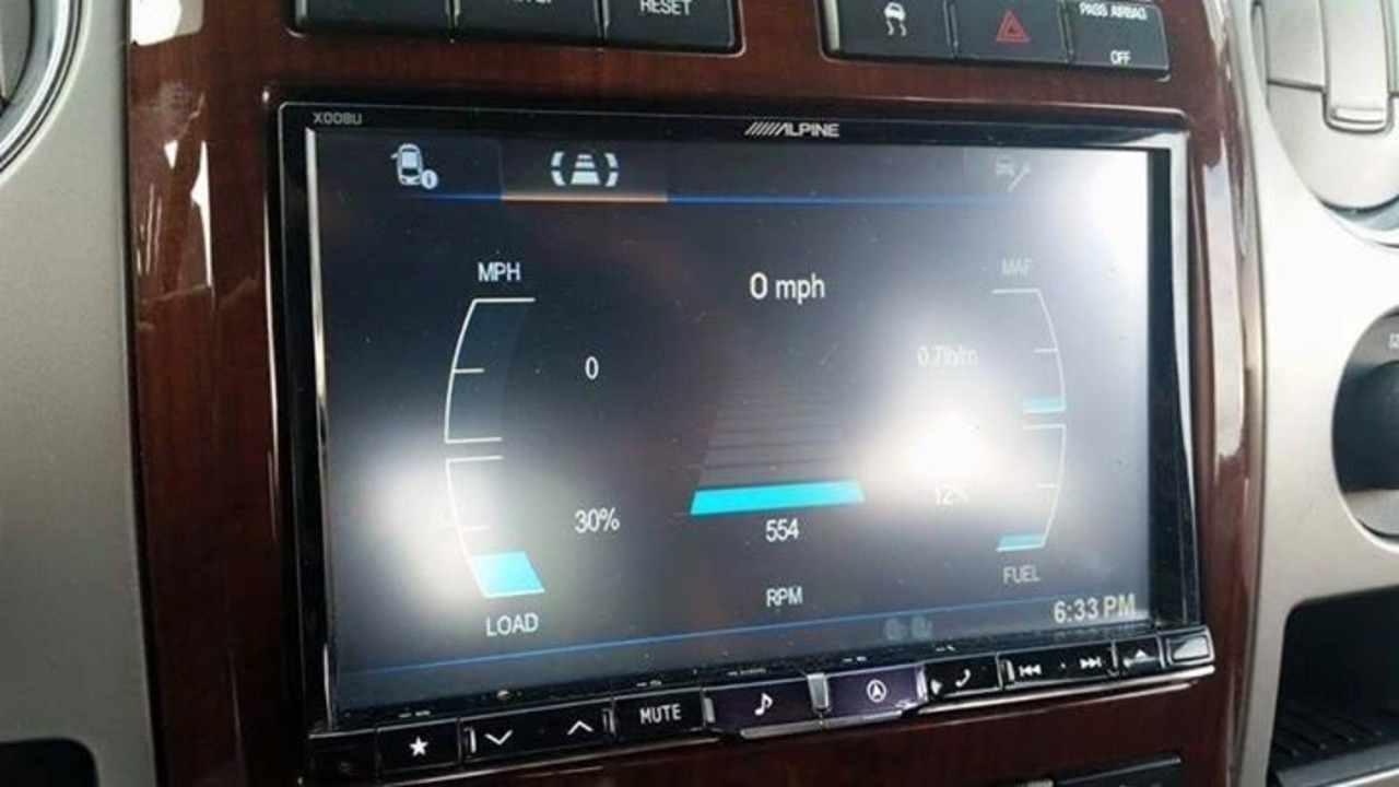 This beast just got a huge 8 inch touch-panel in dash DVD, bluetooth Navigation head unit. A truck this size needs a big screen to match. Connected to the on-board diagnostics of the vehicle, this unit will display various information about your car, truck or SUV. Tire pressure, gas usage info, diagnostics and much more.