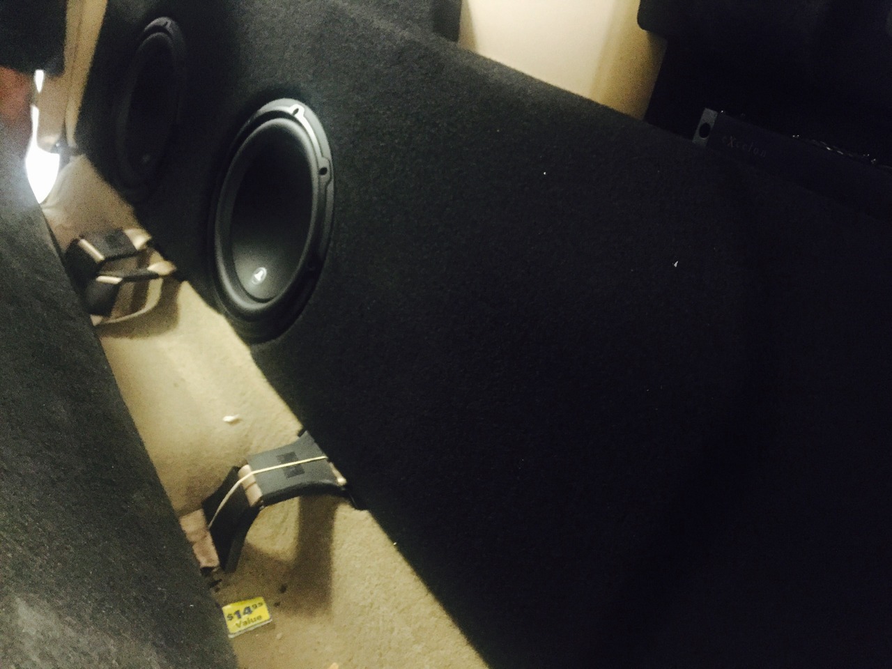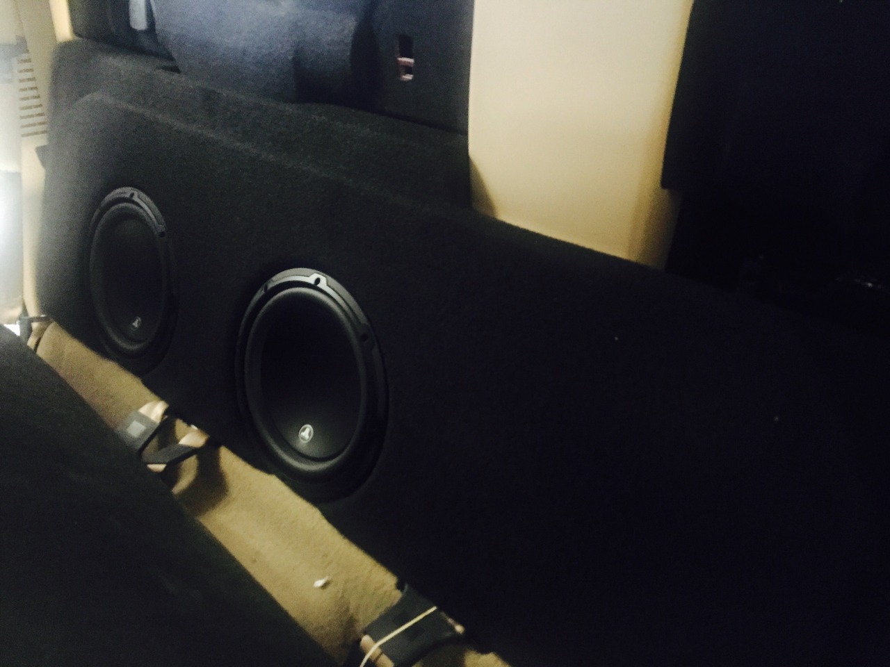 A pair of 10 inch JL Audio W3-series subwoofers went into a custom-built box. Although the space was very tight, our master technician Sam Lynch managed, yet again, to produce a perfect fit enclosure with the right amount of airspace. We also installed a 5 channel amplifier by Kenwood to power up the subs and the pre-existing aftermarket speakers. This King Ranch jams like no other! Customers were asking where all this bass was coming from! Stealth-mode!