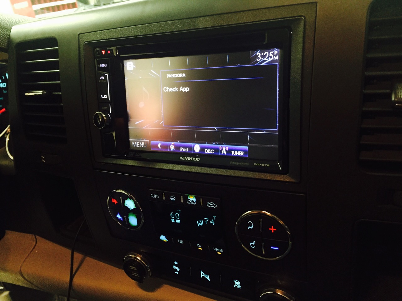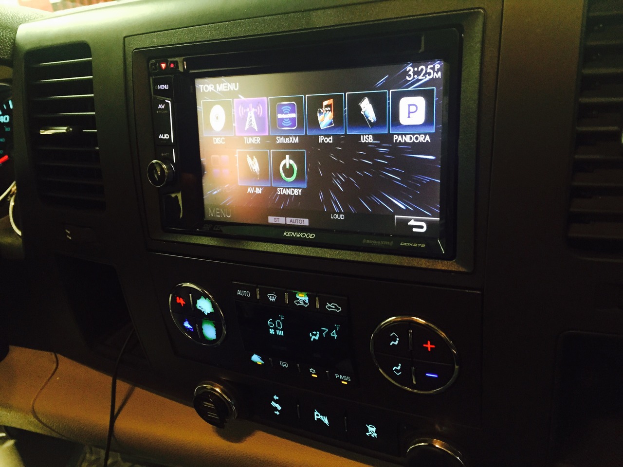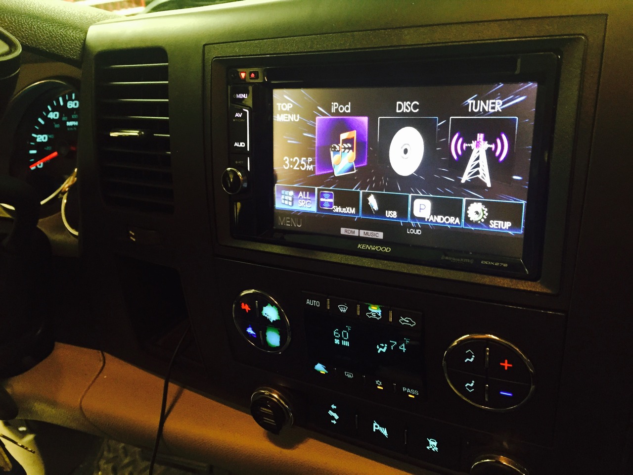 A Kenwood touch-panel radio was installed in this sweet hybrid GMC truck. Also a Kenwood Mono Block amplifier was mounted under the rear seat, and powers up a Kenwood 10 inch sub-woofer. The sub is installed in a ported enclosure built specifically for this vehicle. Everything fits snug under the rear seat so no leg room is lost!