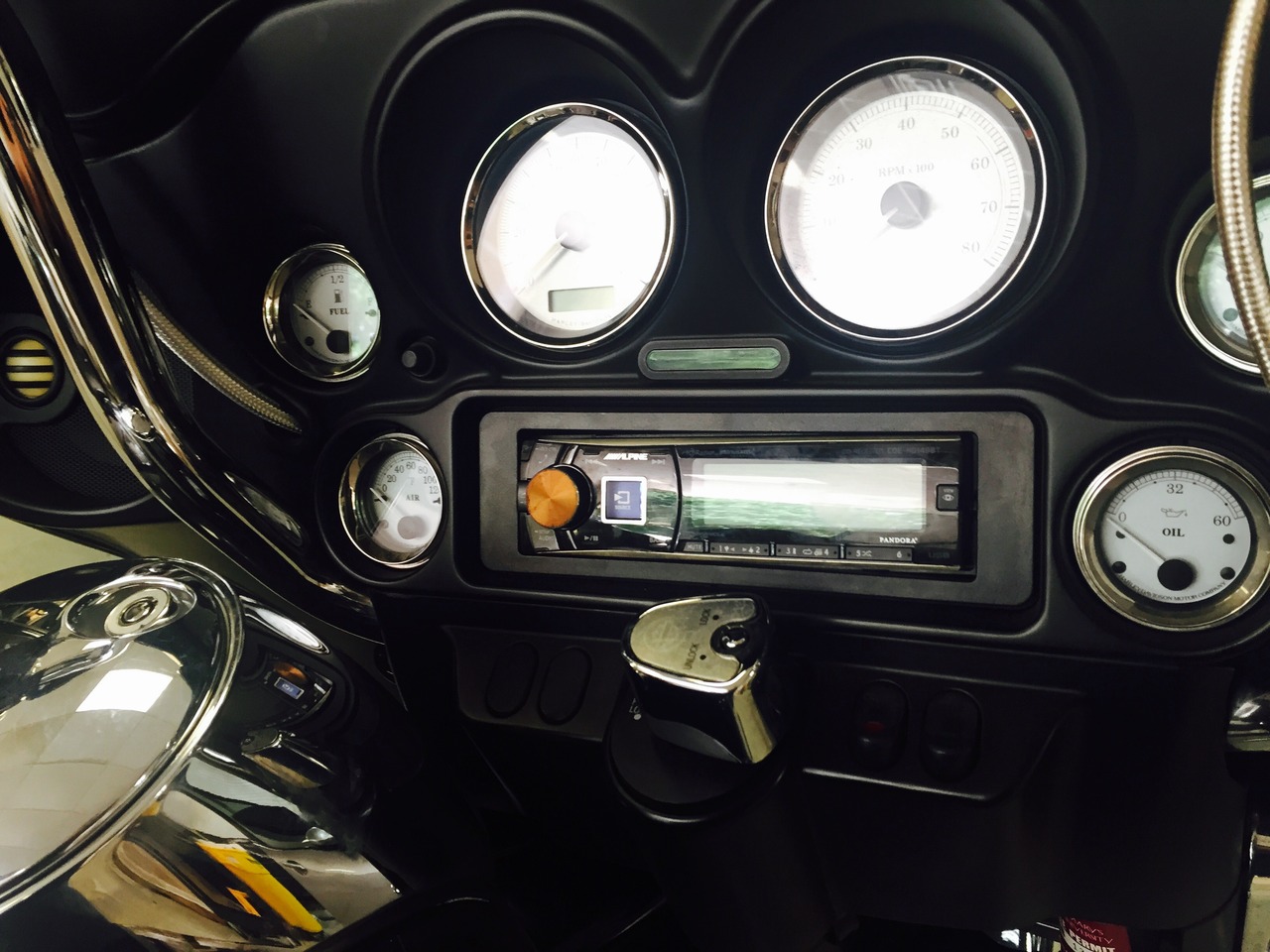 HD radio and Bluetooth streaming keeps this sweet Harley Davidson jamming on the road with killer tunes.