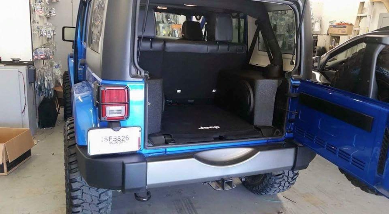 Great looking Jeep! This Oscar Mike edition really is an eye catcher. A custom sub enclosure was built and installed to hold a 12 inch w3 series subwoofer by JL Audio. Looks great and sounds awesome!