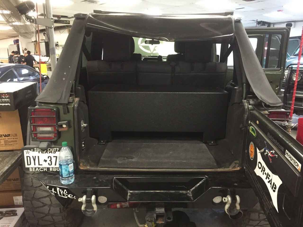 Earth-pounding bass is what you can expect from a JL Audio 13 inch W7 series subwoofer. Imagine a pair of them in a ported enclosure! The amount of pressure produced by this super-high linear excursion sub woofer is tremendous. This Jeep Jams!