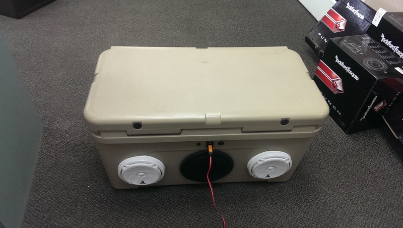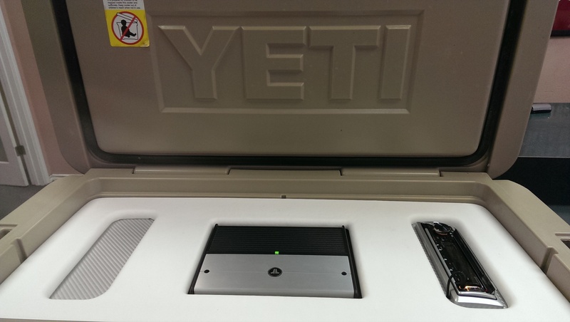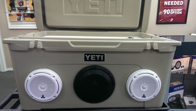 Custom Yeti Cooler with Speakers Installed at Custom Sounds