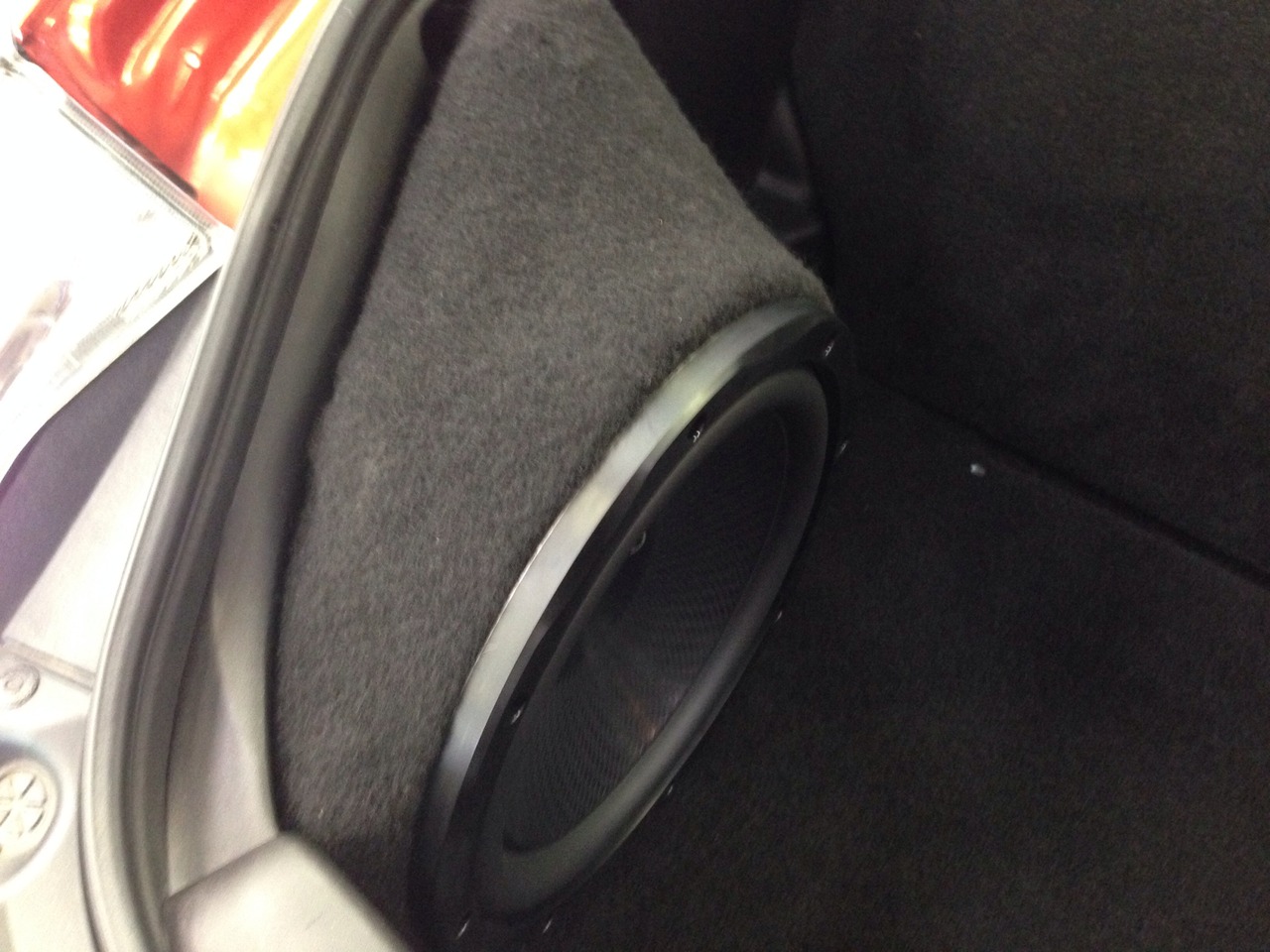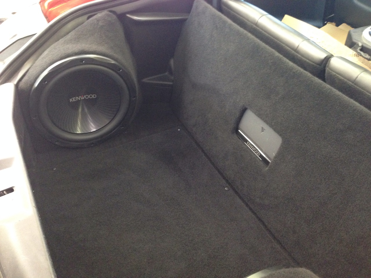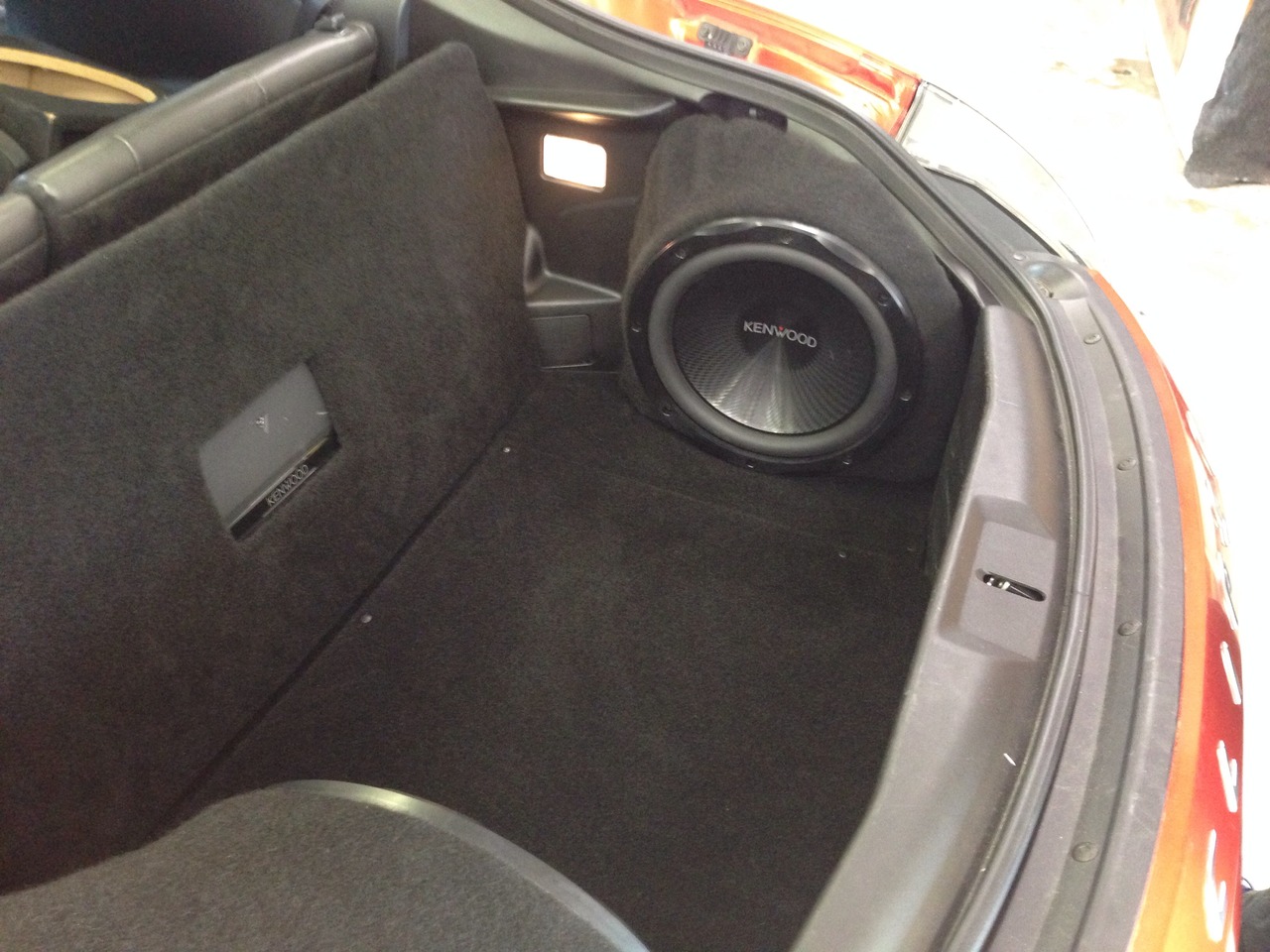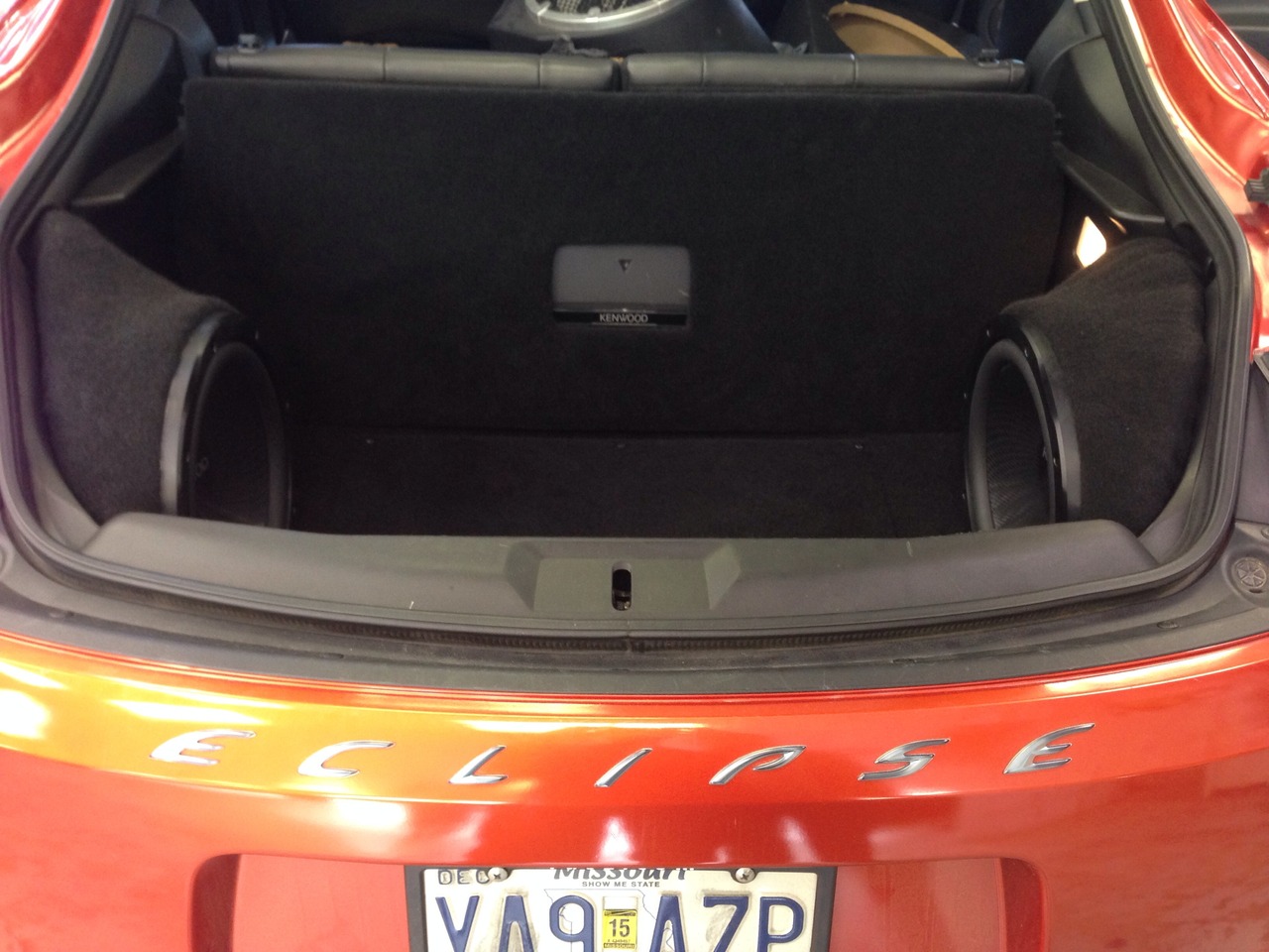 Thanks to the lead tech James Johnson over at our Bridgeton, MO location, this car now beats! The custom fiberglass enclosures he built was designed to retain as much trunk-space as possible. All while giving the subwoofers the airspace they need to perform at their optimum. A false-back panel was installed wth a window to expose the amplifier that boosts this system.