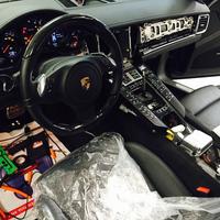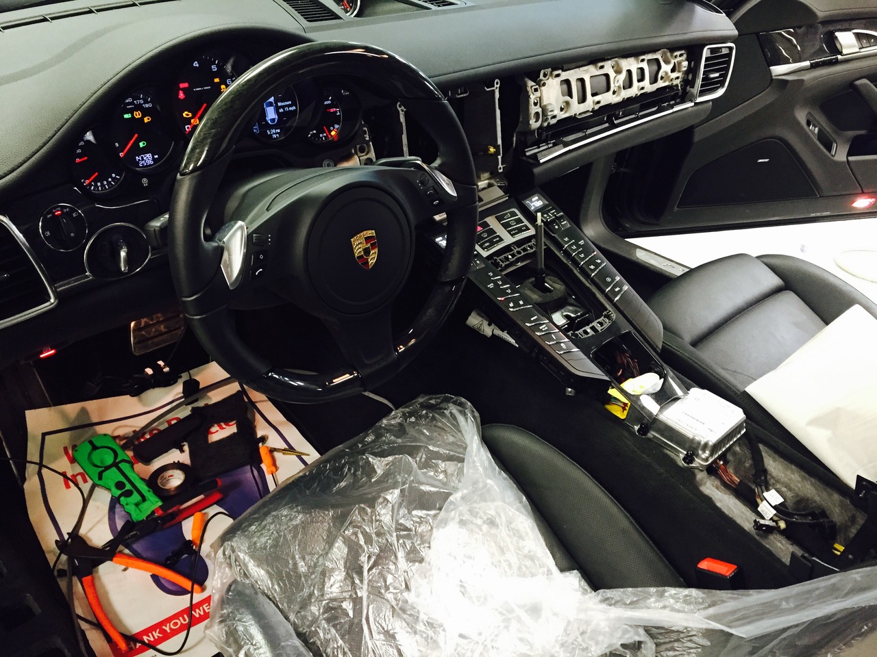 Master technician Rick Ortiz did a great job on this Panamera. A stealth radar detector by Escort Radar was installed flawlessly. The controller and the display were both mounted in the ashtray area under the lid. The lid closes to hide the units. A power switch was also installed because the position of the original power button would not allow for flush-mounting. Lastly, we installed 3M crystalline window tint as well as a heat blocking windshield film.