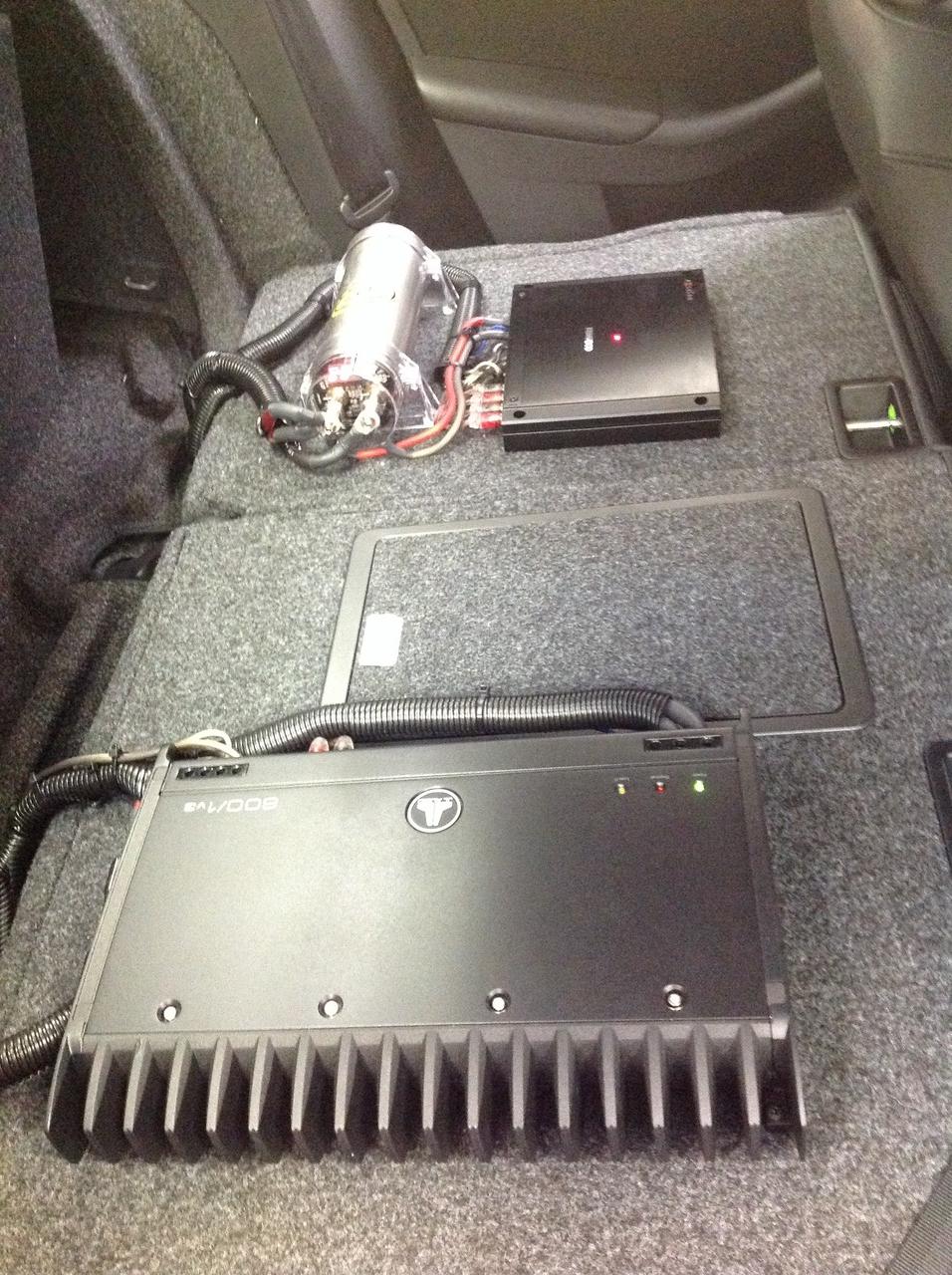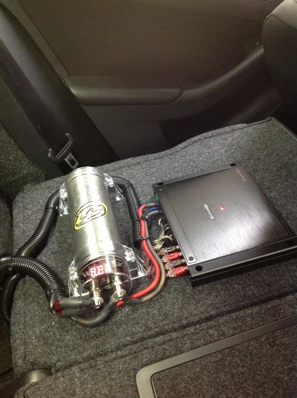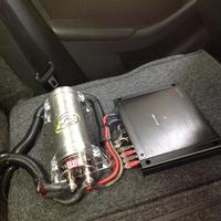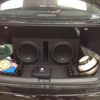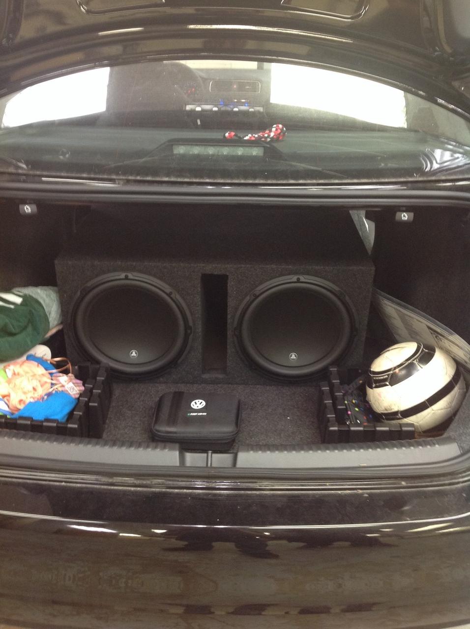 Here's a clean and simple installation job on a VW. Customer was able to have BIG BASS with the 12 inch JL Audio w3 subs, all while retaining some space cargo space. The subs are in an A-Trends ported enclosure and powered by a JL Audio 600 watt amplifier. An Excelon series Kenwood radio in the dash brings music to life with high output and built in EQ.