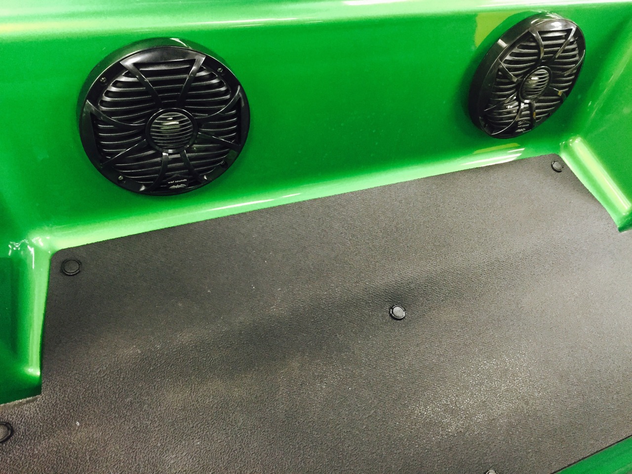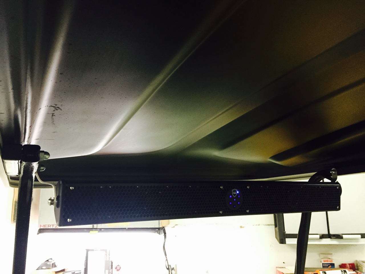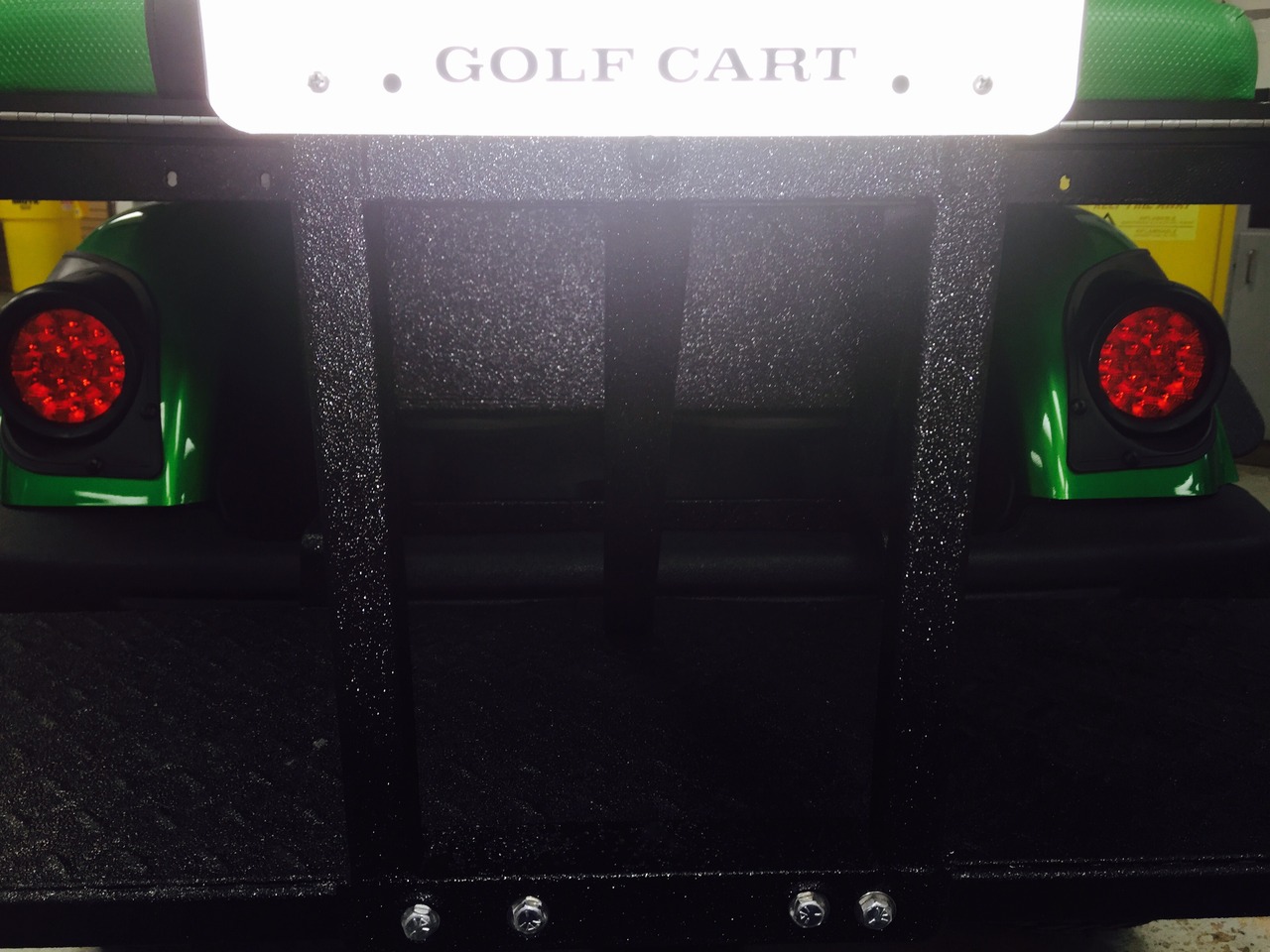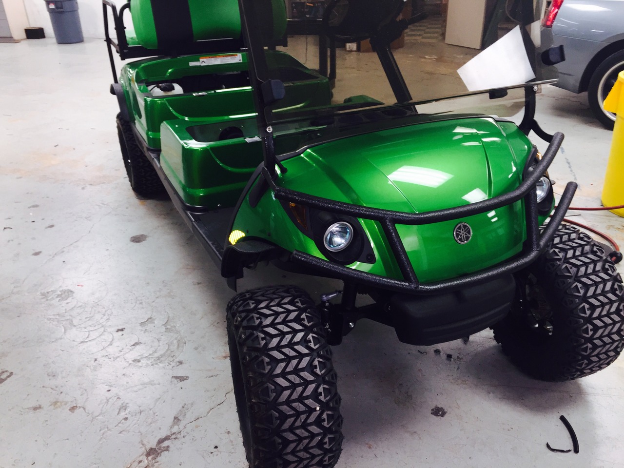 Slick golf cart by Yamaha now has a great sound system with plenty of bass and lots of highs. The stealth10 wet-sounds bar was mounted at the top front of the vehicle for optimized range. Bluetooth audio streams and screams through this system.