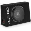 - Finish: Black, high-grade automotive carpet with "JL AUDIO" embroidered in silver on the front baffle. A steel mesh grille is included to protect the subwoofer driver.