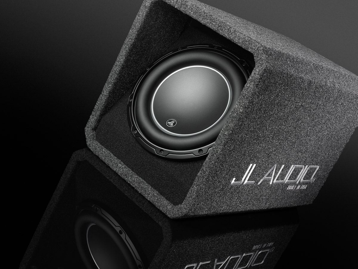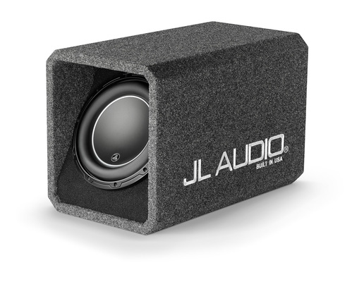 - Finish: Dark gray, high-grade automotive carpet, with black carpet on woofer baffle. "JL AUDIO" is embroidered in silver on the side surface of the enclosure.