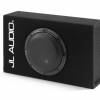 Finish: Black, high-grade automotive carpet with silver "JL AUDIO" embroidery on front baffle. A steel mesh grille is included to protect the subwoofer driver.
