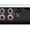 This amplifier features a brushed aluminum finish with black powder-coated cast alloy heat sinks and bottom panel. A black powder-coated, gasketed cover is also provided to protect the controls.