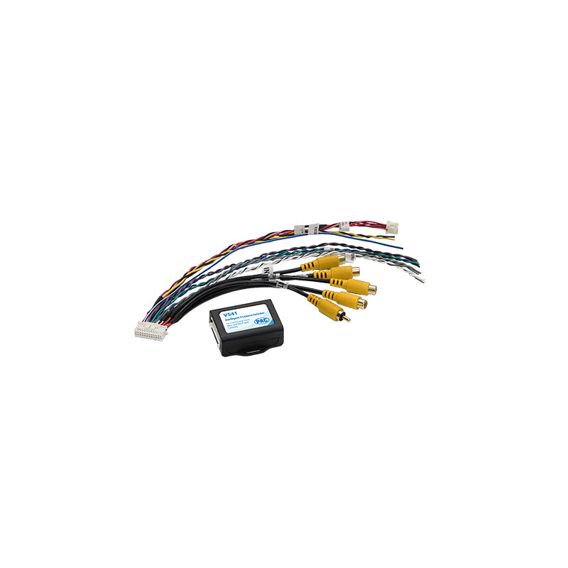 The VS41 is an universal 4-camera switcher that features four camera inputs (front, left and right side, and rear) and one video output for connecting to a factory or aftermarket radio with a video display. The inputs are triggered by driver behavior with the rear back-up inputs automatically activated when the vehicle is shifted into reverse and side inputs prompted by the turn signals. The VS41 is a perfect complement to the versatile universal mount back-up and side blind spot elimination cameras from EchoMaster.